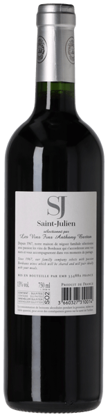Anthony Barton Saint-Julien 2017 är framställd som en utsökt blandning från vänstra stranden, bestående av 40 % Cabernet Sauvignon, 39 % Merlot, 11 % Cabernet Franc och 10 % Petit Verdot, som alla skördats på grusiga vingårdar hos ett av prestigeappellationens vinslott med status som 1855 Grand Cru Classé. Efter avslutad jäsning överförs rödvinet för 12 månaders mognad på ett år gamla 225‑liters franska barriquefat.