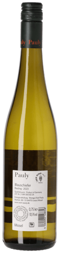Axel Paulys mineraliska Blauschiefer 2023 är gjord på 100 % Riesling, som vinodlaren selekterar från branta vinodlingar med hög koncentration av Mosels berömda blåskiffer i marken. Efter några timmars kallmaceration spontanjäser det vita vinet i ståltank med vingårdens naturligt förekommande jäst. Efter avslutad jäsning mognar vinet under några månader på de fina jästresterna, som tillför krämig textur och mineralsk finess till smakupplevelsen.