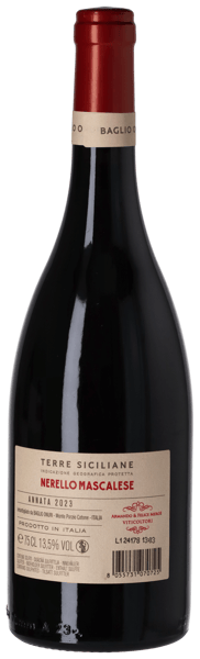 Baglio Onuri Nerello Mascalese 2023 glittrar elegant körsbärsröd i glaset... I doften tydligt Pinot Noir-liknande med eleganta florala nyanser och en saftkoncentrerad röd bärfrukt som nästan dansar ur glaset... Rosor, violer, skogssmultron, granatäpple, tranbär och körsbär – toppat med vulkanisk mineralitet, skogstoner, söt balsamico, peppar och fina kryddor. Vinet lägger sig elegant och silkeslent på tungan, där årgångens perfekt balanserade frukt går in i ett vackert samspel med fatets kryddighet. Eftersmaken imponerar återigen med sin smygande silkeslena och saftiga elegans, sin längd och sin mycket tilltalande stil. Det här är Nerello Mascalese som alla kan tycka om! Drick nu, eller lagra 8–10 år från skördåret.