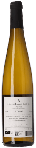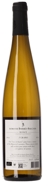 7 Grains står praktfullt i glaset med en ljus, livlig och limegrön färg... Gläd dig åt doften, som förmedlar hela essensen av Alsace med sina många druvsorter som tillsammans skapar en helt unik aromsymfoni... Ur glaset stiger ljuvliga noter av kaprifol, ingefära, päron och röda äpplen, flätade med pomelo, röda körsbär och exotiska frukter… På tungan känns den vibrerande frisk och energisk med stor koncentration, men utan att någonsin bli tung. I smaken finns apelsinblomma, inlagd lime, en lätt salt grapefrukt, persikoskinn och en havsbrisfrisk mineralitet. En diskret kryddig ton gör sig gällande i den långa och munvattnande avslutningen. Spännande biodynamiska toppviner från Barmès-Buecher. Drick nu, eller lagra 5–8 år från skördeåret.