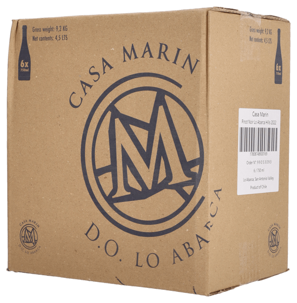 Casa Marin Lo Abarca Pinot Noir 2022 är gjord på 100 % Pinot Noir. Druvorna skördas från det unika terroiret kring staden "Lo Abarca". Här finns optimala jordmånsförhållanden med riklig kalksten och gamla havsfossil. Vinstockarna ger en ovanligt låg avkastning och mognar långsamt i det svala, kustnära klimatet, bara 4 kilometer från Stilla havet. Det resulterar i smakintensiva druvor med en livlig syra som skapar balans. I vineriet jäses vinet spontant i rostfria ståltankar. Tre gånger om dagen stampas druvskalen ner i musten för att extrahera struktur, kropp och färg. Vinet lagras därefter i 14 månader på franska ekfat, varav 25 % nya. Resterande del på "second use"-ekfat.