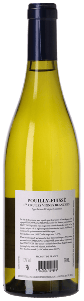 Vinet är gjort på 100 % Chardonnay, vars druvor handplockas från det prestigefyllda Premier Cru-läget "Les Vignes Blanches" i Pouilly-Fuissé. Läget ligger i det perfekta smörhålet mellan "Le Clos" och "Les Perrieres", som med fog kan betraktas som två av de bästa lägena i hela Pouilly-Fuissé. Vid ankomst till vineriet avstjälkas druvorna och pressas varsamt, varefter musten fördelas mellan ekfat och ståltankar för den alkoholiska jäsningen. Cirka 30 procent av faten är nya, vilket ger en fin balans mellan frisk frukt och elegant fatkrydda. Efter jäsningen genomgår vinet full malolaktisk jäsning för att uppnå en mjukare och mer harmonisk struktur. Därefter lagras det i 12 månader på ekfat, återigen med cirka 30 procent nya innan buteljering.