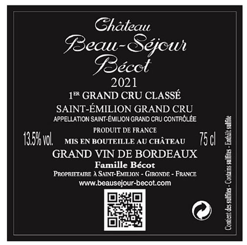 "The 2021 Beau-Séjour-Bécot is one of the most elegant wines I have ever tasted here. Pliant and deep, with striking depth, the 2021 is outrageously beautiful. All the elements come together so effortlessly. Dark fruit, mocha, spice, licorice and incense all build in the glass. The creamy tannins are impossibly refined for the year, while the finish is eternal. The 2021 is a real stunner. Readers won't want to miss it!"