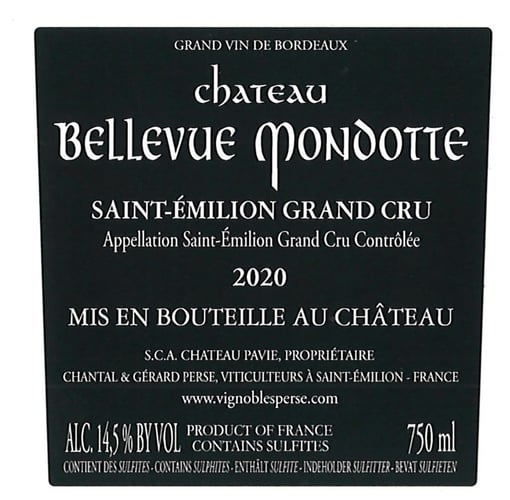 The 2020 Bellevue Mondotte is a dark, brooding Saint-Émilion, from just two hectares of vineyards. Graphite, gravel, scorched earth, inky dark fruit, chocolate and cloves stain the palate. Deep and explosive, with tremendous energy, the Bellevue Mondotte is magnificent and also one of the most distinctive wines in the appellation. In 2020, it’s 100% Merlot, as the small parcels of Cabernet Franc and Cabernet Sauvignon that once were used here have been budded over to Merlot. What a wine!