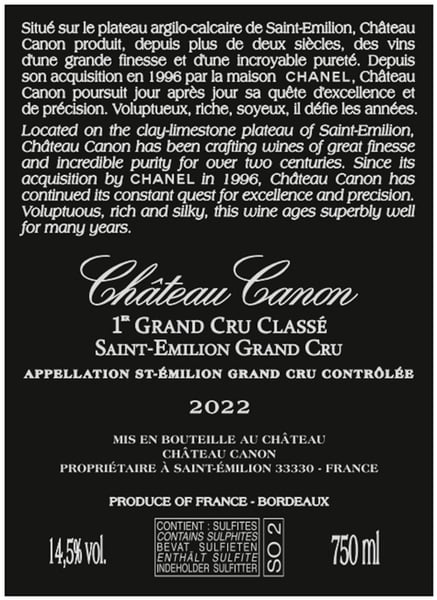 From an estate that is delivering its greatest run of vintages since the superb Post War series that preceded the frosts of 1956, the 2022 Canon is a magical wine that will be worth every effort to track down. Wafting from the glass with aromas of dark berries, wild plums and cherries mingled with hints of bay leaf, spices and violets, it's full-bodied, layered and multidimensional, with huge levels of concentration, vibrant acids and beautifully refined tannins. Concluding with a long, saline finish, this pure, perfumed and ineffably complete Canon is built for the ages, even if its structural polish is such that it will be approachable at a surprisingly early age.