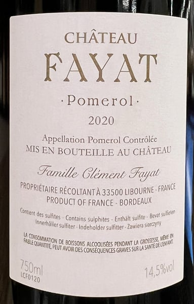 Chateau Fayat är kulmen på en 25 år lång sammanslagning av tre vingårdar i Pomerol, Bordeaux, av byggjätten och finansmannen Clément Fayat. År 2009 lyckades han slå samman slotten La Commanderie de Mazeyres, Vieux Bourgneuf och Prieurs de la Commanderie till det nu mer passande och enkelt klingande Chateau Fayat. Chateau Fayat har nu 16 hektar planterade med 80% Merlot och 20% Cabernet Franc, under överinseende av den världsberömde oenologen och vinkonsulten Michel Rolland. De producerar cirka 60.000 flaskor per år, varav 50% lagras på nya ekfat, medan en tredjedel lagras på ståltankar för att bevara vinets ungdomliga frukt. Clément Fayat kanske låter bekant i vissa öron... Han är ägare till den stora och toppmoderna vingården La Dominique i Saint-Émilion Grand Cru Classé...