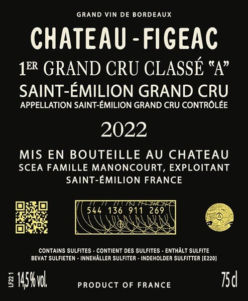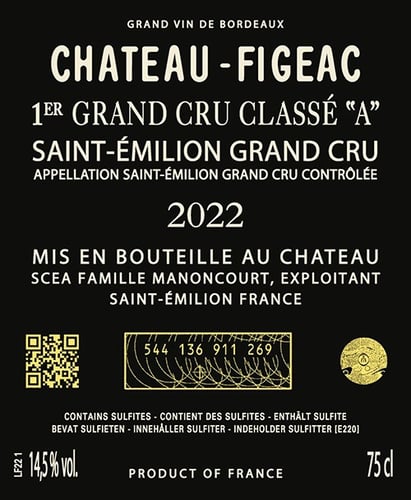 A blend of 35% Merlot, 34% Cabernet Franc and 31% Cabernet Sauvignon, the 2022 Figeac is a brilliant wine with which to celebrate this property's elevation to Premier Grand Cru Classé "A" status. Wafting from the glass with aromas of raspberries and cassis mingled with notions of iris, forest floor, cigar wrapper and pencil lead, it's medium to full-bodied, pure and perfumed, with a deep and multidimensional core of fruit, bright acids and beautifully refined tannins. Serious yet civilized, it's the quintessential Figeac, testament to the late Thierry Manoncourt's vision to plant such a large proportion of Cabernet, and on drought-resistant rootstocks. Such is the inherent complexity of Figeac's terroirs that harvest took place sub-block by sub-block between September 1st and 25th. Congratulations are in order for the Manoncourt family, director Frédéric Faye, consulting winemaker Thomas Duclos and all their team.