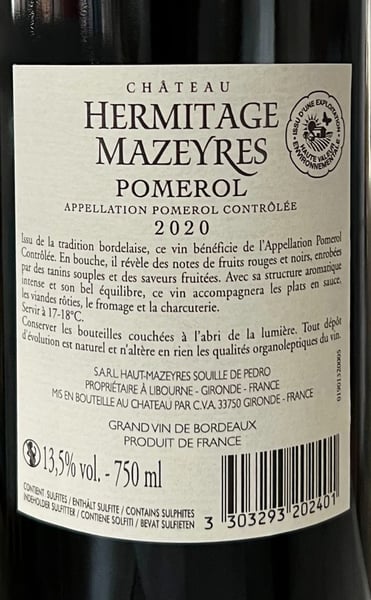 Hur är Chateau Hermitage Mazeyres Pomerol 2020 framställt?