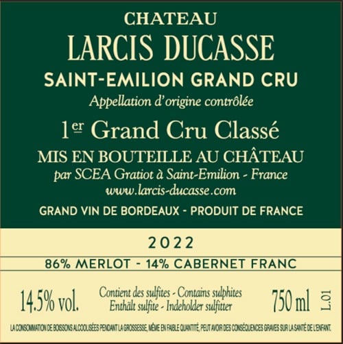 Chateau Larcis Ducasse Saint-Emilion 1.er Grand Cru Classe B 2022 i trækasse