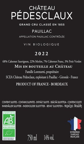 Château Pedesclaux Paulliac 5. Cru Classé 2022 ØKO i trækasse