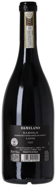 Damilano Barolo DOCG Liste 2020 er fremstillet på 100 % Nebbiolo, som Damilano selekterer fra over 35 år gamle vinstokke på enkeltmarken Liste, der ligger i den nordlige del af Barolo-kommunen, nær grænsen til La Morra. Vinhusets 2 hektar, der er velsignet med en perfekt syd- og sydøstvendt orientering, frembringer sammen med jordbundens indhold af 55 % silt, 30 % ler og 15 % sand en så kraftfuld og struktureret Barolo, at Damilano frigiver Liste et helt år senere end de tre andre enkeltmarksvine. Vinen spontanfermenterer med terroirets naturligt forekommende gærstammer på ståltank, mens 20 dages nænsom maceration med skallerne sikrer et seriøst udtræk af aroma, farve og tanniner uden at gå på kompromis med druens naturlige elegance. Efter endt gæring modner vinen i 24 måneder på store, italienske og franske egetræsfade, der via en kontrolleret mikrooxidation blødgør tanninerne og fremmer kompleksiteten – uden at forstyrre terroirets særlige karaktertræk. Efter fadlagringen tappes vinen på flaske og lagrer yderligere to år i kælderen før frigivelse.