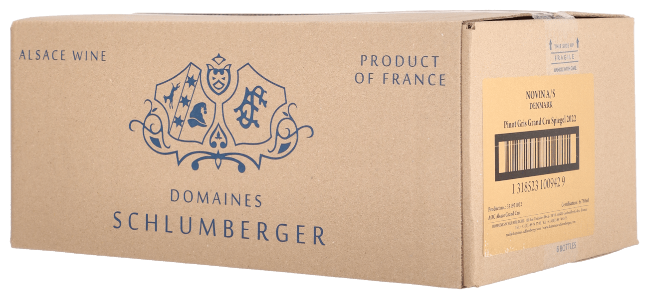 Domaines Schlumberger Pinot Gris Grand Cru Spiegel 2022 står elegant gyllene och lätt fyllig i glaset… Doften lovar en seriös, Grand Cru-koncentrerad Pinot Gris med druvtypiska aromer av päron, honung, fikon och persika, som vackert kompletteras av florala nyanser, nötkryddor och en vibrerande citrus-mineral underton från den östligt exponerade Speigel-terroiren… På tungan framträder vinet harmoniskt och levande med en frisk, väl integrerad syra, som på ett förnämligt sätt framhäver den rika, druvtypiska fruktsmaken. Det här är Alsace Pinot Gris med smörmjuk fyllighet och diskret sötma, som lyfts av en välgörande spänst, så balansen sitter precis rätt… Ren och bestående eftersmak. Ett balanserat Alsacevin i ren världsklass. Drick nu, eller spara 10–15 år från skördeåret.