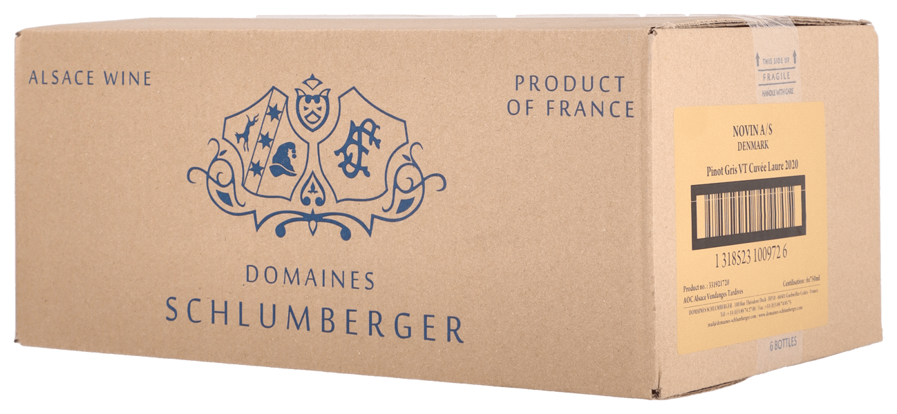 Vinet är lagrat på Domaines Schlumbergers stora och vackra, 120 år gamla ekfat. Liksom alla husets andra viner är Pinot Gris Vendanges Tardives ”Cuvée Laure” buteljerad med naturkork, som familjen Schlumberger själva har valt ut från sina leverantörer under 50 år...