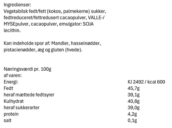 Kan indeholde spor af mandler, hasselnødder, pistacienødder, sesam, æg og gluten (hvede og byg).