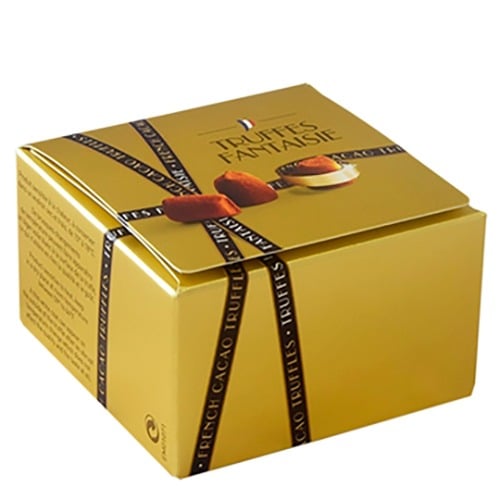 Æsken indeholder 50g cacaopudrede chokoladetrøfler.