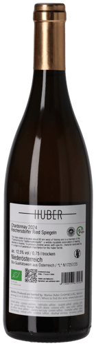 Vinet är framställt på 100% Chardonnay, som Markus Huber handplockar från ett mycket kalkhaltigt och ekologiskt odlat toppläge, Ried Spiegeln, som sluttar mot öster med en vacker utsikt över den mäktiga floden Donau. I vineriet pressas de hela druvklasarna långsamt och varsamt under en period om sex timmar, vilket frigör den mest delikata druvmusten. Därefter spontanjäser vinet temperaturkontrollerat med terroirens egen jäst på 500-liters franska ekfat. Vinet mognar i 10 månader på 500-liters franska ekfat i kontakt med de fina jästresterna.