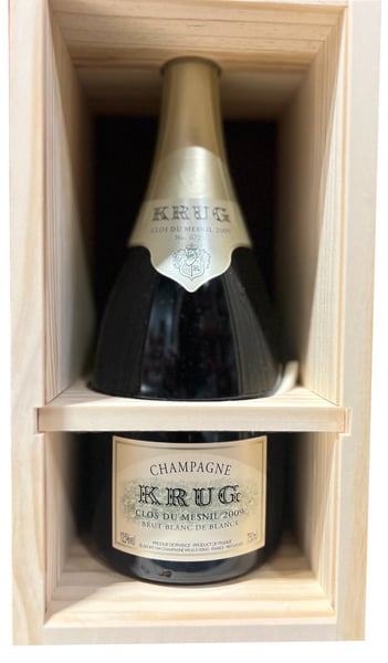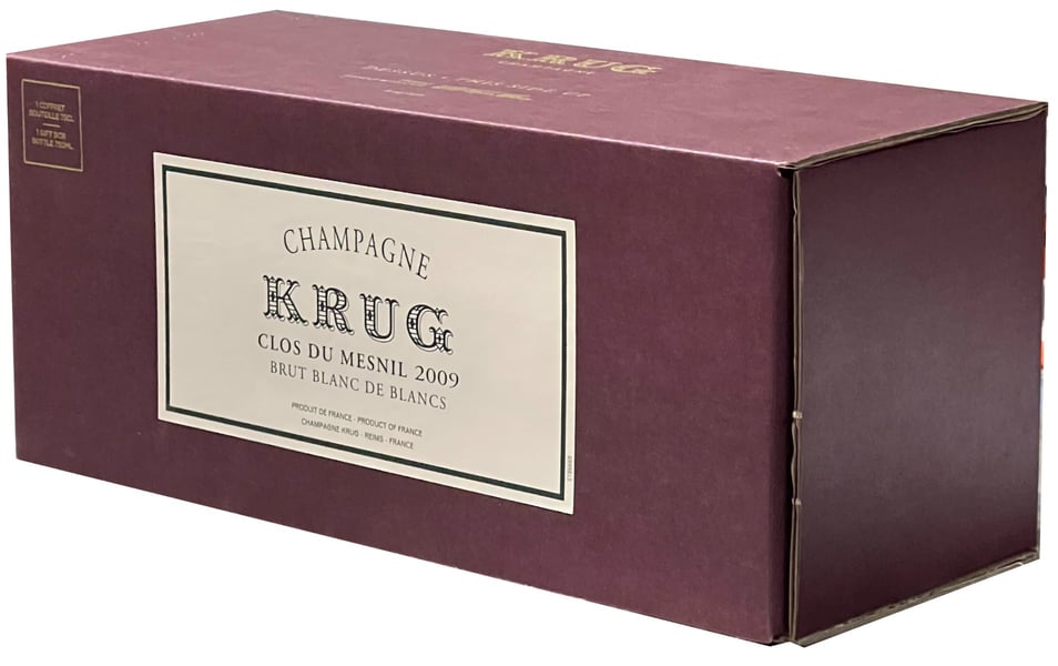 Krug Clos du Mesnil 2009 är en legendarisk Blanc de Blancs, framställd på 100 % Chardonnay vars druvor handplockas som hela klasar över fem till sex skördeomgångar från en 1,84 hektar liten, kringmurad vingård nedanför bykyrkan i Le Mesnil-sur-Oger. Druvmusten vinifieras på ekfat utan malolaktisk jäsning. Efter andrajäsningen på flaska följer cirka 12 års lagring på jästresterna fram till dégorgement.