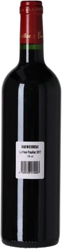 La Fleur Pauillac 2017 presenterar sig mörkt körsbärsröd i glaset med en djup, nästan svart kärna, samtidigt som kanten har små tegltoner efter 8 års källarlagring. Doften i La Fleur vecklar ut sig med underbar Pauillac-parfym i form av torkade violer, intensivt svarta vinbär, plommon, röda körsbär, mynta, tobak och eleganta våta skogsmarksnoter från de många års flasklagring. På paletten breder La Fleur ut sig med sin ädla Pauillac-frukt, som domineras av svarta vinbär och körsbär samt en fin underliggande mineralitet från regionens grusiga jordmån. De 8 års flasklagring har fört tanninerna till ett finslipat stadium och de smälter perfekt in i den långa finishen med spännande nyanser av kaffe och torkade kryddörter. Drick nu, eller lagra 10–15 år från skördeåret.