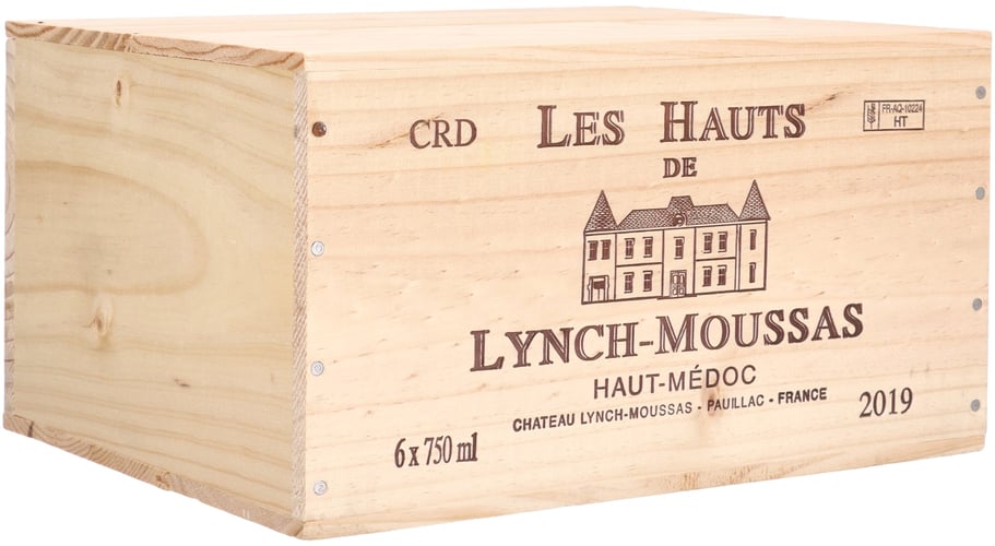 Les Hauts de Lynch-Moussas har producerats sedan 2001 och årgång 2019 är en blandning av 52% Cabernet Sauvignon och 48% Merlot, handskördad och dubbelsorterad vid ankomsten till slottet. Vinifieringen sker parcellvis och i källaren lagras vinet på franska barriquer i 14-24 månader beroende på årgång. Ekfaten kommer från 7 olika tunnbindare som var och en på sitt sätt bidrar till vinets kryddiga komplexitet.