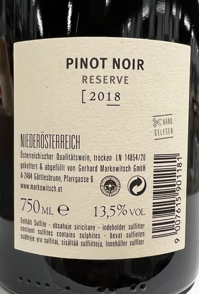 Hur smakar Markowitsch Pinot Noir Reserve 2018?