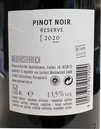 Hur smakar Markowitsch Pinot Noir Reserve 2020?