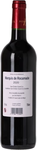 Hur är Marquis De Rocamade Saint-Émilion Grand Cru 2020 i trälåda framställt?