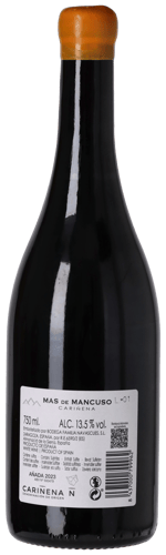 Mas de Mancuso Cariñena 2023 är gjord på 100 % Cariñena (Carignan) från nordvända skiffermarker i höjderna ovanför Almonacid de la Sierra – den förmodligen mest prestigefyllda byn i vindistriktet Cariñena i Aragón. Druvorna handskördas från upp till 50 år gamla vinstockar och jäser som hela klasar med fottrampning och 20 dagars maceration – en metod som främjar vinets parfym, struktur och aromatiska komplexitet. Efter jäsningen mognar vinet i 18 månader på franska ekfat om 500 liter. Endast ca. 4 000 flaskor produceras.