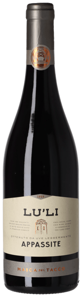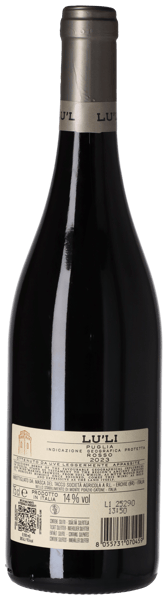 Lu'Li 2023 görs av en syditaliensk blandning av Primitivo, Montepulciano, Sangiovese och Lambrusco, som koncentreras till små russin genom lufttorkning på vinstocken före skörden. Vinet jäser med fruktbevarande temperaturkontroll och maceration av druvskalen innan det mognar i ståltankar.