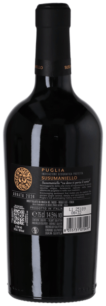 Vinet är gjort på 100 % Susumaniello, som handskördas från vingårdar i Apulien. En del av rödvinet mognar fruktbevarande i ståltank, medan cirka 20 % av rödvinet berikas av utsökta kryddtoner under flera månaders lagring på exklusiva franska barrique-ekfat.