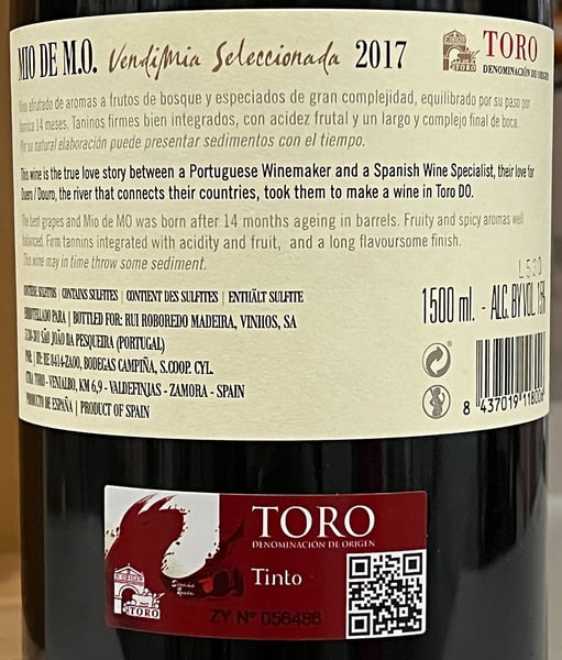 Det populära rött vinet Mio de M.O. är ett samarbete mellan Marques de Olivara i Toro och den portugisiske stjärnvinmakaren Rui Roboredo Madeira. Toro-regionen ligger i nordvästra Spanien, mellan Ribera del Duero i öster och "portvinsfälten" i Douro i väster. Stilen liknar Ribera del Duero, men eftersom Toro ligger längre nedströms från Duerofloden är klimatet varmare och Tempranillovinerna är ofta extra solmogna och kraftfulla.