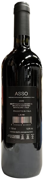 Asso 2020 är framställd av 85% Montalcino Sangiovese och 15% Merlot från utvalda Brunello-vingårdar i Montalcino-området. Vinet har välbalanserade kryddtoner efter hela 12 månaders lagring på franska och amerikanska barriquefat.