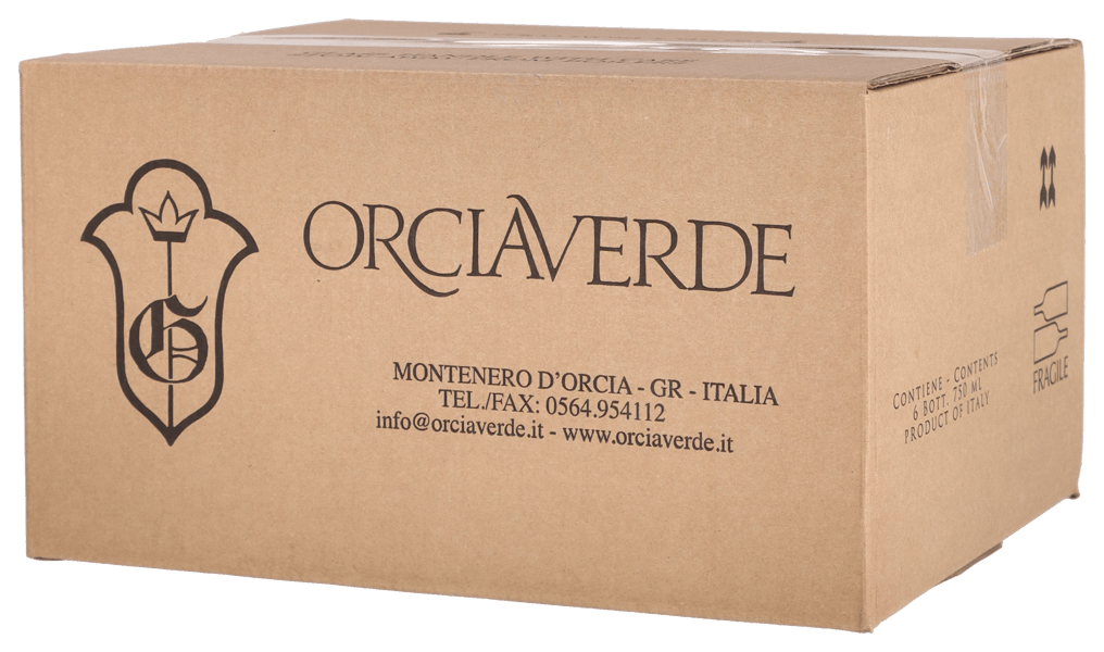 Orciaverde Rosso 2022 glimmar djup körsbärsröd i glaset... Doften återger årgångens sol och värme med ovanligt intensiva aromer av violer, tranbär, plommon, svarta vinbär och mörka körsbär, som bär på brunelloliknande drag av läder och torkade örter samt välavvägda kryddor från fatlagringen.... Vinet lägger sig mjukt och vänligt på tungan, medan årgångens generösa bärfrukt breder ut sig kraftfullt i hela munhålan. Eftersmaken är harmoniskt fatkryddad med pikanta toskanska örttoner och biffvänliga tanniner. I förhållande till priset ett must-try för alla Brunello-fans! Drick nu, eller lagra 5-8 år från skördeåret.