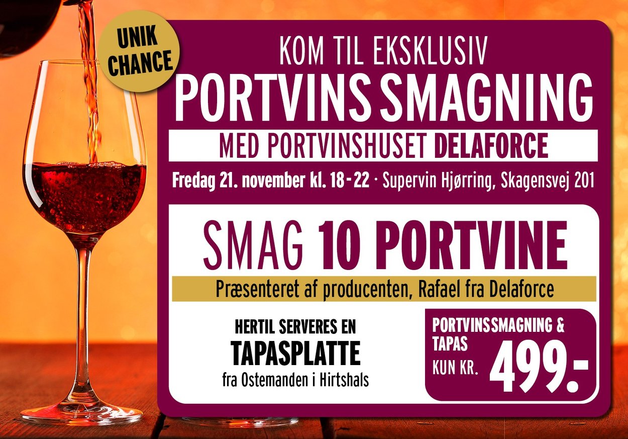 Julen närmar sig, och vad är mer självklart än att värma sig med ett glas fyllig, sammetslen portvin? Den 19. december kl. 15–17 bjuder vi in till årets stora Portvinsfestival hos Supervin i Hjørring – och du är inbjuden!