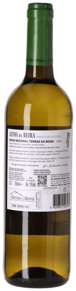 Altos da Beira Branco är gjord på 55% Síria och 45% Fonte Cal. Druvorna kommer från högbelägna Beira Interior i östra Portugal, från odlingar med granit och kvartsrik skiffer. De handplockade druvorna pressas som hela klasar, varefter den fina musten jäses fruktbevarande i ståltank vid låga 16–17 °C.