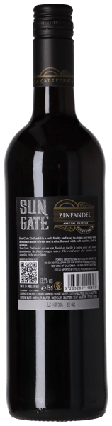 Vinet är framställt på 100% Zinfandel, som Sun Gate väljer ut från utvalda kaliforniska vingårdar kring staden Cutler. Musten från de optimalt solmogna druvorna jäses med fruktbevarande temperaturstyrning i ståltank, innan mognad och buteljering.