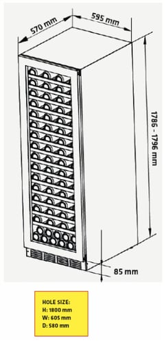 Mål: Højde: 1786-1796 mm Bredde: 595 mm Dybde: 570 mm