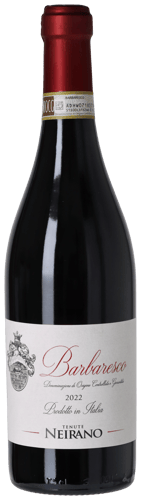 Neiranos otroligt läckra årgång 2022 Barbaresco visar upp den karaktäristiska och knivskarpa körsbärsröda färgen, som kompletteras av tegelfärgade nyanser i kanten. Doften ger först en parfymartad blomsterbukett med färska violer och torkade rosor, vilken sedan kompletteras av skogssmultron, hallon, tranbär och körsbär samt komplexa inslag av svamp, mentol, torkad tobak och choklad… Silkeslen och läcker i munnen där de röda bären i smaken härligt väcks till liv med en lekfull frisk mineralitet och ett välavvägt tanninbett. En utmärkt Barbaresco som visar Nebbiolo från en mer ungdomlig, saftig och nästan burgundisk elegant sida. I den fina årgången 2022 är det enormt value for money!
