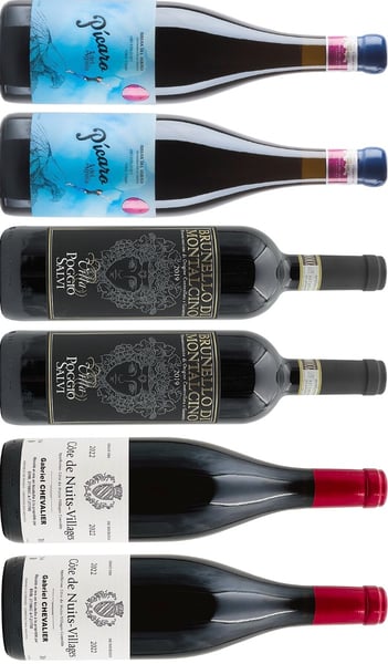De bästa kvalitetsvinerna från Ribera del Duero, Brunello di Montalcino och Bourgogne som vi kan få tag på. Det här är en av de starkaste Vinlådor vi någonsin har satt ihop. Tre viner som överträffar sina konkurrenter på alla parametrar årgång efter årgång. Recensioner, kvalitet och bäst av allt … pris.