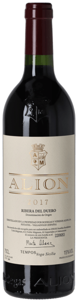 Vega Sicilia Alión 2017 framställs av 100 procent Tempranillo, som skördas från husets egna parceller och utvalda kontraktsodlingar i Ribera del Duero, där vinstockarna typiskt är omkring 30 år gamla och odlas med låg avkastning för att säkerställa koncentration. Skörden sker för hand i små lådor om 12 kilo och ägde rum från 12 till 28 september 2017, varefter druvorna dubbelrensas, först som klasar och därefter som enskilda bär. Jäsningen sker i träkar med temperaturkontroll och en macerationstid på cirka två till tre veckor, där både pigeage och remontage används selektivt för att styra den fenoliska extraktionen. Den malolaktiska jäsningen genomförs i övervägande nya franska barriques för att tidigt integrera syrastrukturen och ge en mer polerad textur. Vinet lagras därefter i cirka 12 till 14 månader, främst på nya franska ekfat från ledande tunnbindare som Radoux, Saury och Taransaud, medan en mindre andel lagras på använda fat och i cement för att bevara friskhet och undvika överväldigande fatpåverkan. Efter fatlagringen blandas de enskilda parcellerna och vilar sedan cirka 15 månader på flaska.