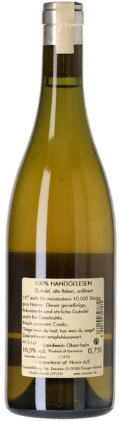 Resultatet jämförs ofta med Bourgognes största vita viner - från Montrachet Grand Cru från Domaine Leflaive till de bästa Meursault från Ziereisens förebild Coche Dury. Smidig och flyter elegant. Mineralitet på metern. Finess ännu finare än i burgundisk Chardonnay ... och ändå med så mycket kraft!