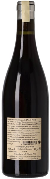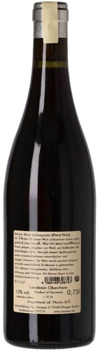 Vinet är gjort på 100% Pinot Noir, handskördad från den enda, 1,5 hektar stora, kittelformade åkern Talrain, som är omgiven av skog 500 meter upp i Schwarzwald. Här uppe har jorden en "burgundisk" roströd färg med sin önskvärda blandning av järnoxid och kalksten. Terroirvinet spontanjäses med 4 veckors hudkontakt. Resultatet är ett rött vin med en unik, sval, mineralisk karaktär som kompletteras med kryddig komplexitet från 20 månader i 1-3 år gamla tyska barriques i kontakt med den fina jästfällningen.